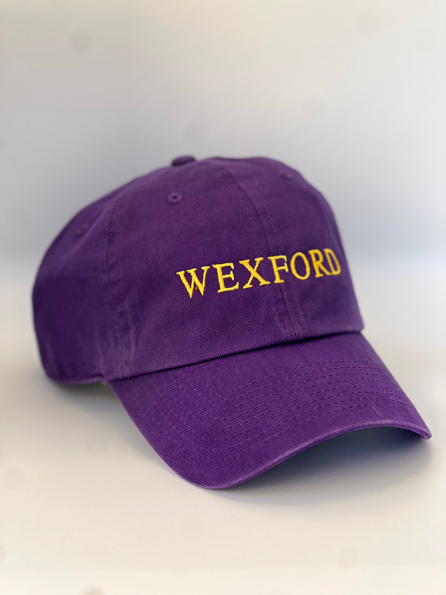 Classic 100% cotton six panel baseball cap with adjustable back strap. Purple colored hat with yellow embroidery.