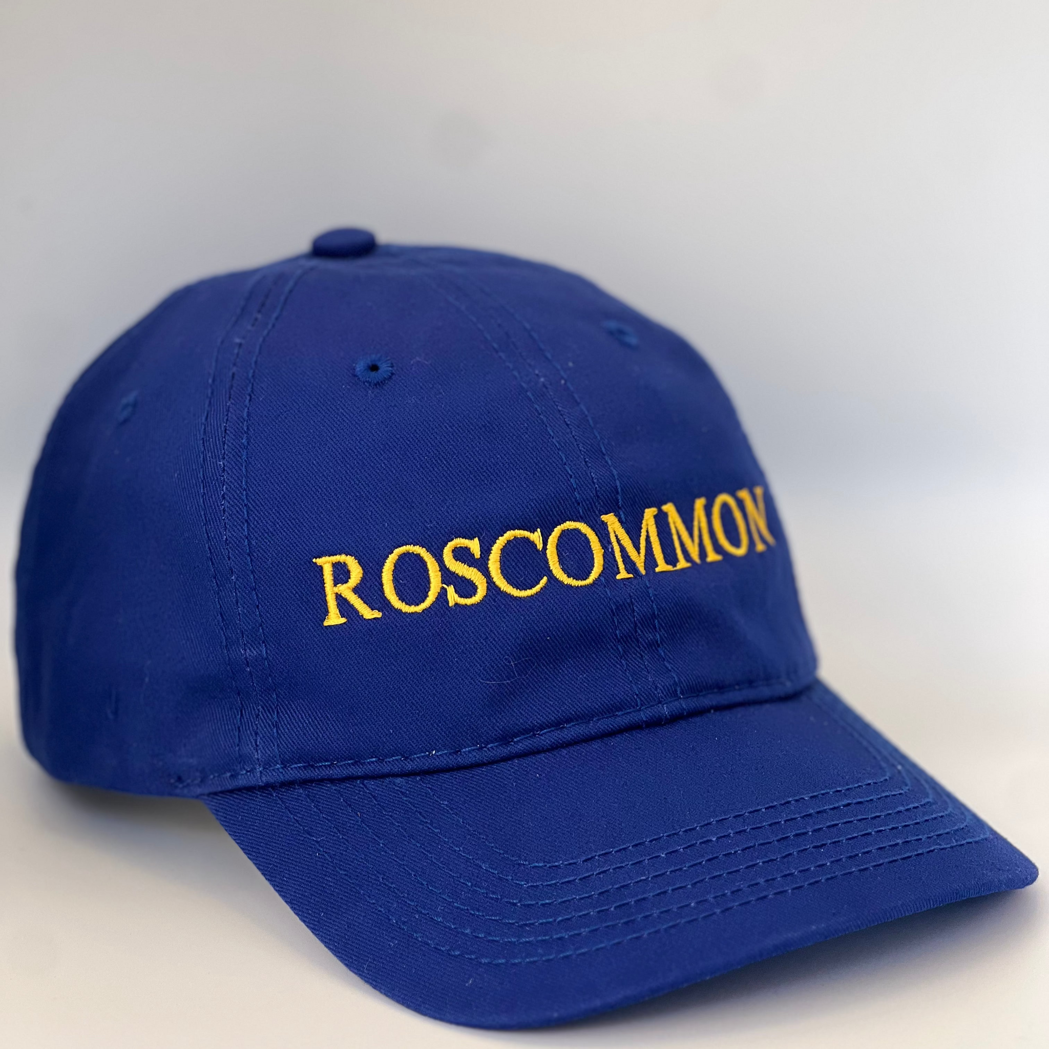 Blue cap with 'ROSCOMMON' embroidered in yellow on a blue background